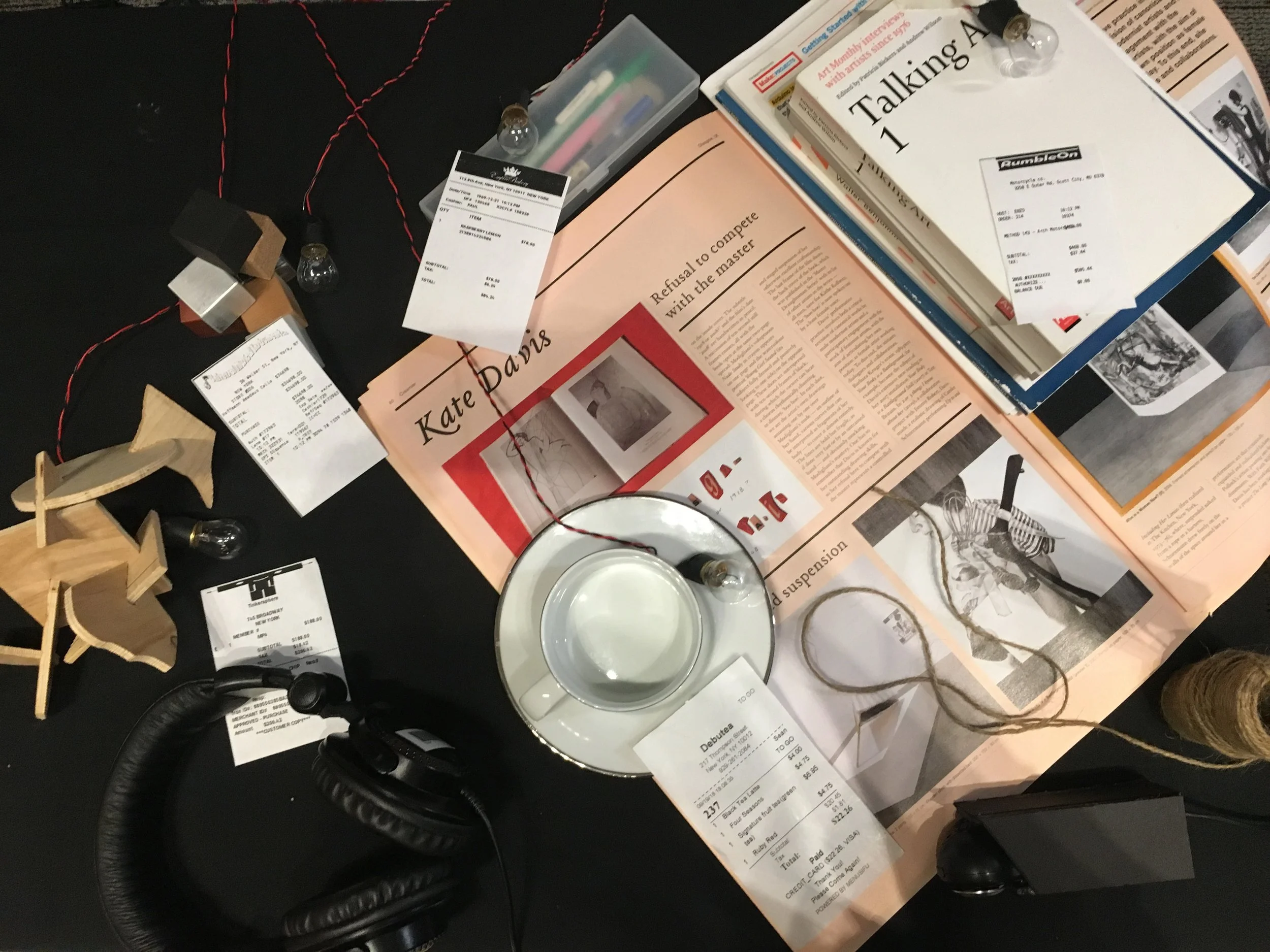 This is an AR project I collaborated with Chengchao Zhu. Viewers use the scanner (black camera with a handle on the right bottom corner) to scan the receipts on the table. When they scan the receipt, they can hear an audio story about the object a person bought and a relevant life moment about this object. I noticed that the design of how to use the scanner really matters. We made the camera like a scanner because we try to mimic the experience of scanning products in supermarket.
